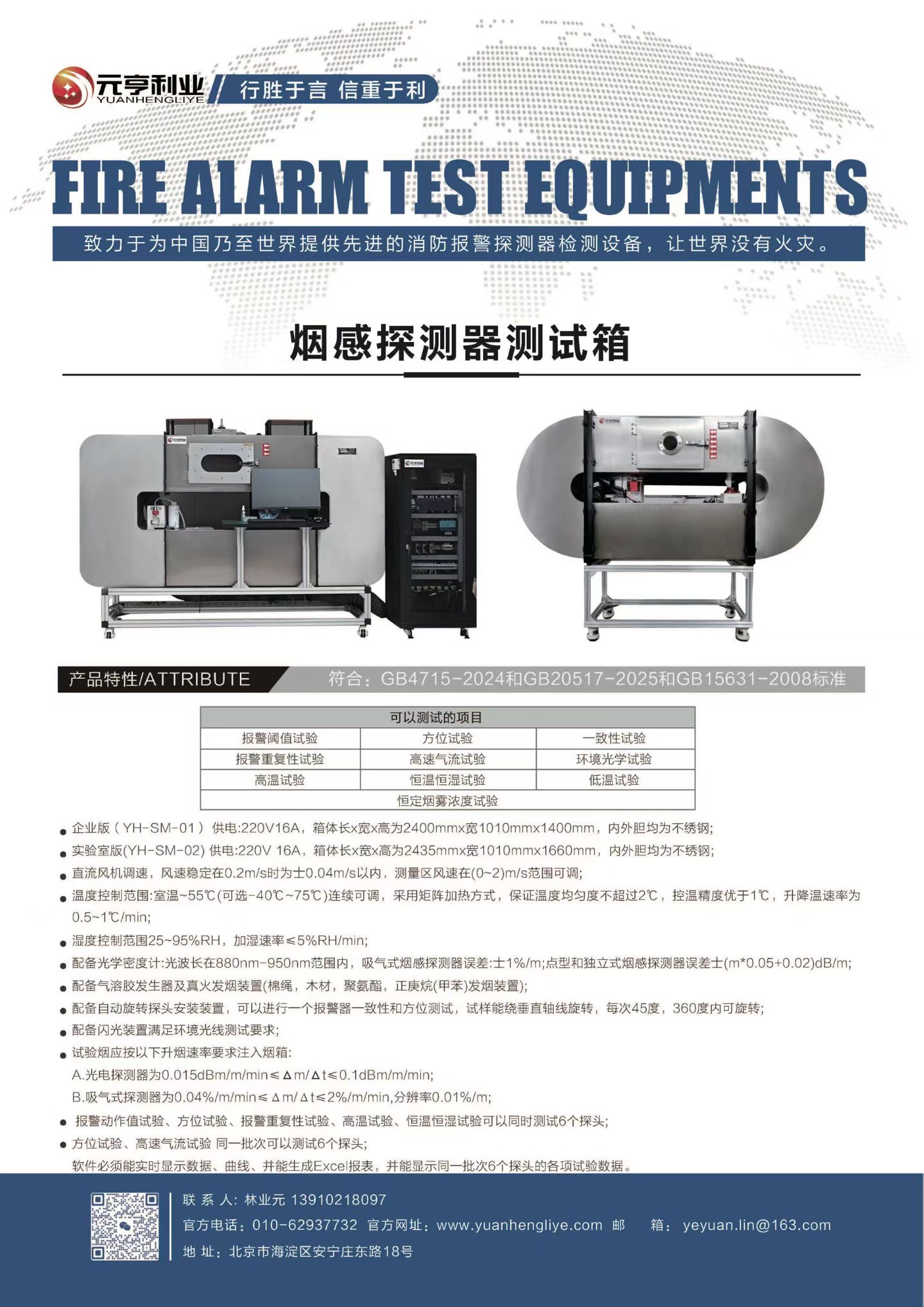 应急管理部上海消防研究所购买元亨利业自主研发的烟感测试烟箱、高精度气体浓度配比试验箱等相关测试设备,元亨利业致力于为中乃至世界提供先进的消防产品检测设备。